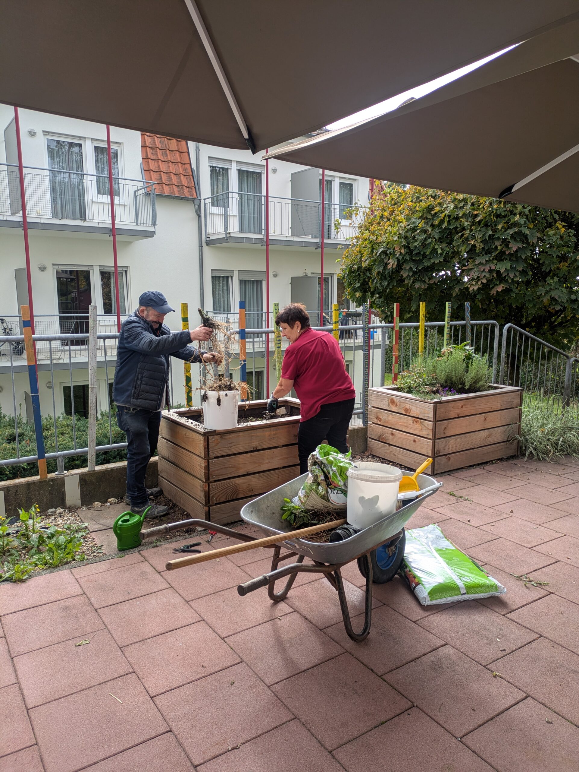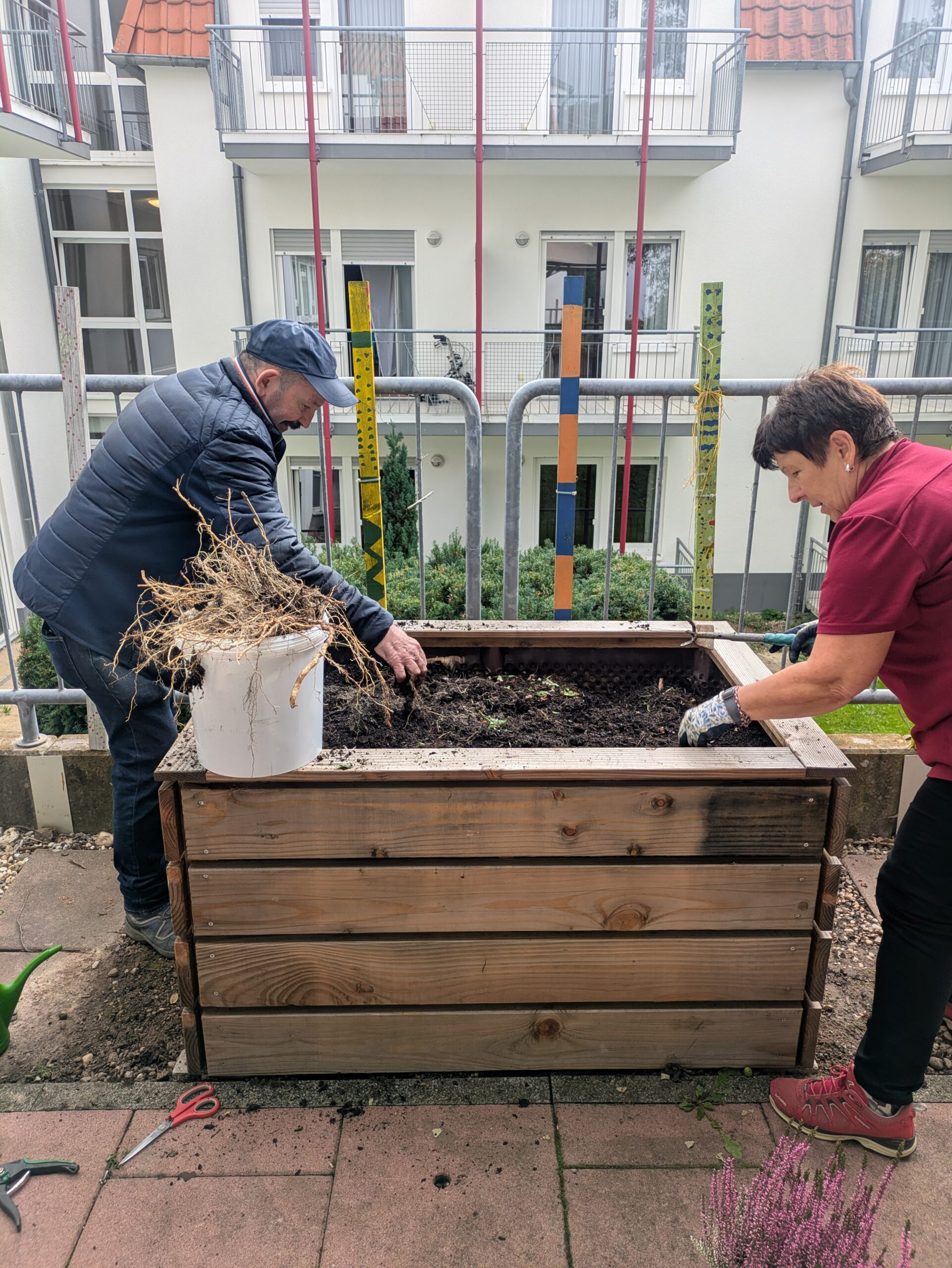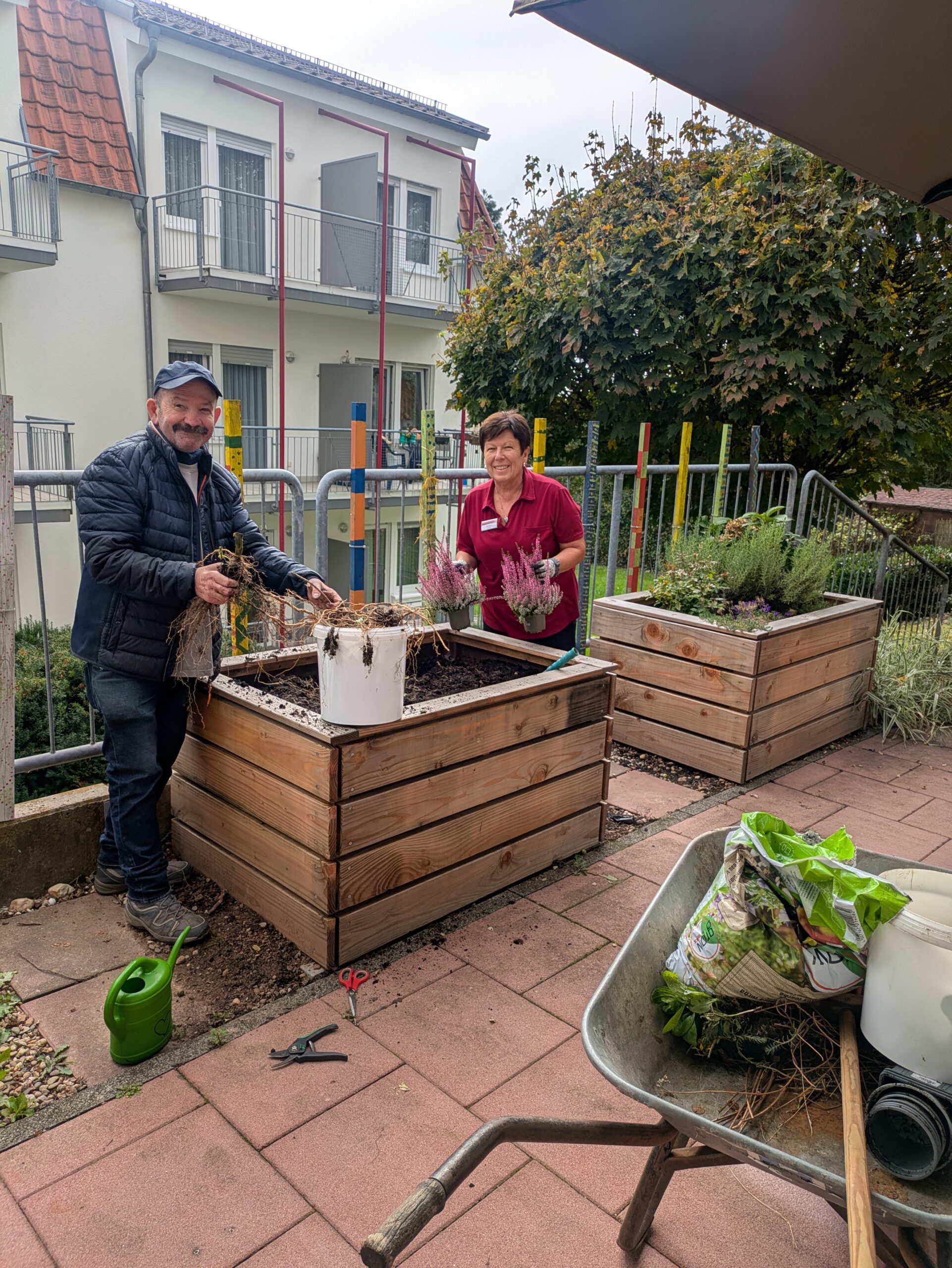 Die Finger in die kühle Erde graben, Blumen einpflanzen, ihnen beim Wachsen zusehen, … Gartenarbeit ist für viele Menschen sehr erfüllend. Man ist an der frischen Luft, bewegt sich und erschafft etwas mit den eigenen Händen. So geht es auch Herrn Steck, einem unserer Gäste. Gemeinsam mit unserer Hausdame Petra bereitete er die residenzeigenen Hochbeete auf die kalte Jahreszeit vor. Wahrzunehmen, was unseren Gästen guttut, ihre Interessen aufzugreifen und dann ihr Lächeln im Gesicht zu sehen – das ist einfach unbezahlbar!